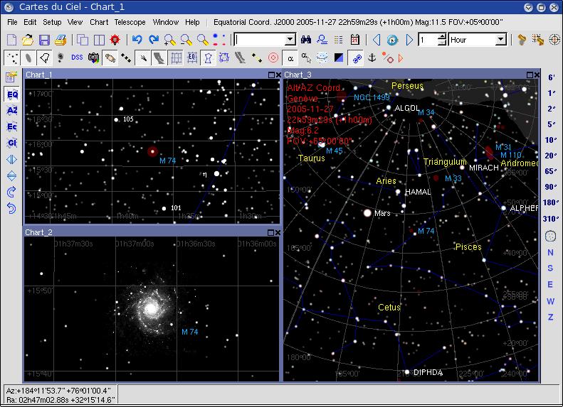 catalogs of stars and nebulae. In addition the position of planets, asteroids