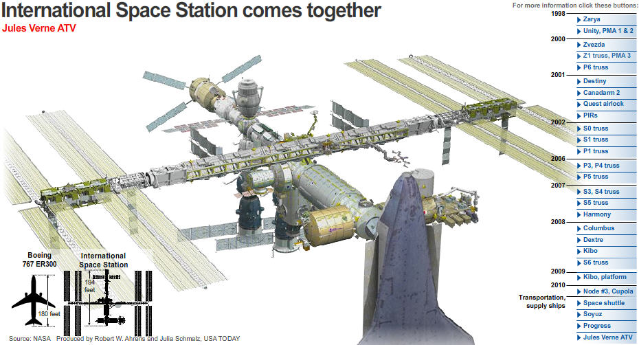 This animated clip shows how the International Space Station has grown over time.